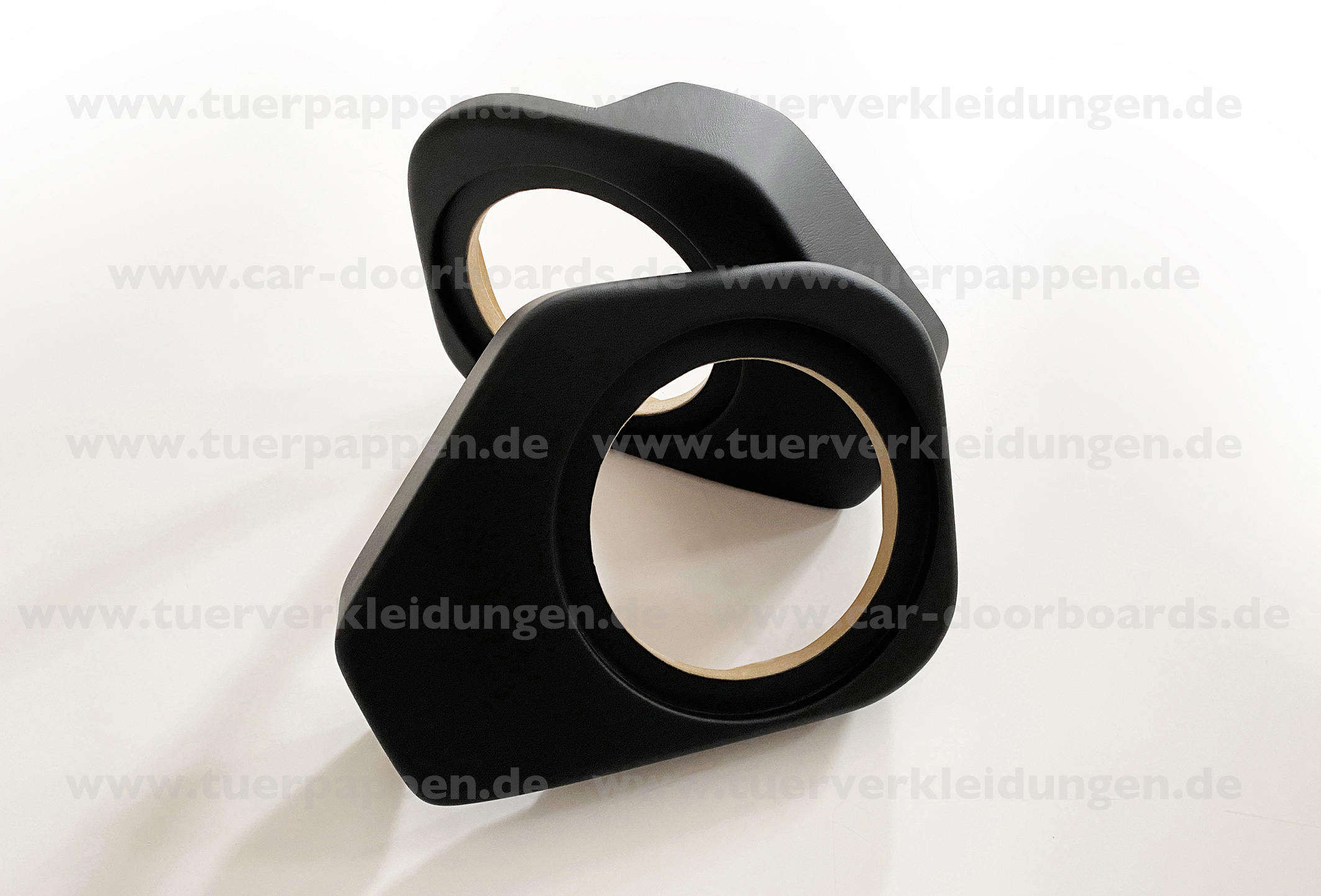 Farbe anthrazit, fast schwarz, Material Kunstleder. Befestigungsmaterial liegt der Lieferung bei, es wird zwar kein Spezialwerkzeug für die Montage benötigt, aber die Türverkleidung muss bearbeitet werden damit die Lautsprecher Platz haben. Die Boards schließen bündig mit der Türverkleidung ab.